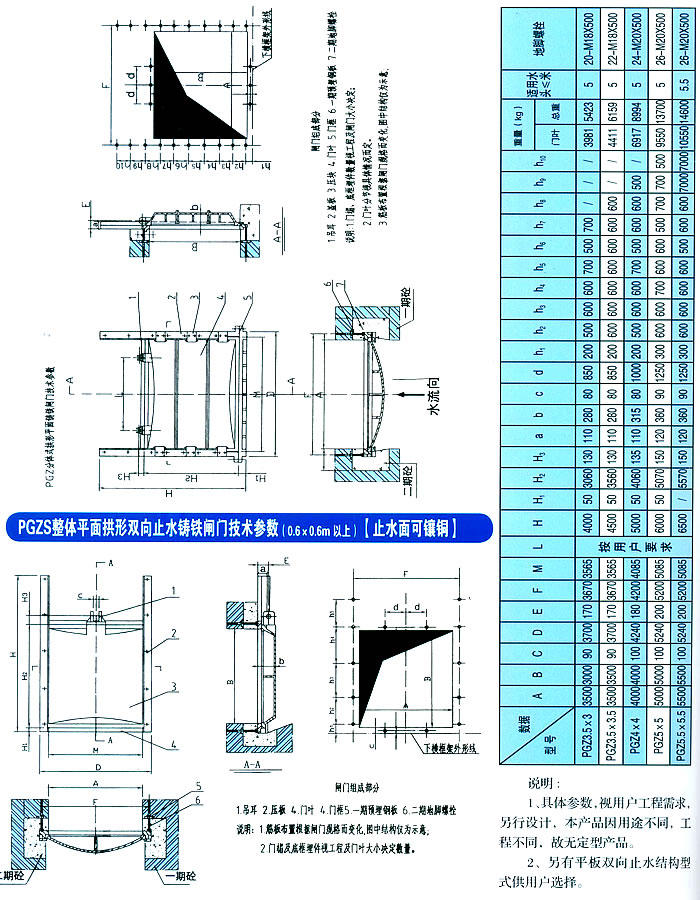 PGZS整體平面拱形雙向止水鑄鐵閘門